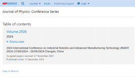 所有的投稿都必須經(jīng)過2-3位同行專家評審,經(jīng)過嚴(yán)格的審稿之后,最終所有錄用的論文將在Journal of Physics: Conference Series (ISSN: 1742-6596)出版,出版后將提交EI Compendex和Scopus檢索。(檢索非常穩(wěn)定,往屆已見刊檢索)