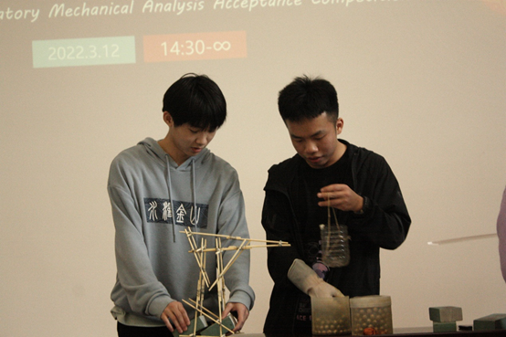 經(jīng)過兩個(gè)小時(shí)的激烈角逐,按照模型的最終承重大小評(píng)比出了前十名。此后,這十名選手為在場觀眾講解了其創(chuàng)作經(jīng)歷,或是從生活當(dāng)中得出靈感,或是實(shí)驗(yàn)出真理,亦或是尋求他人的幫助,巧妙利用團(tuán)隊(duì)的力量,總之整場比賽帶來的挑戰(zhàn)讓同學(xué)們更好的成長了。