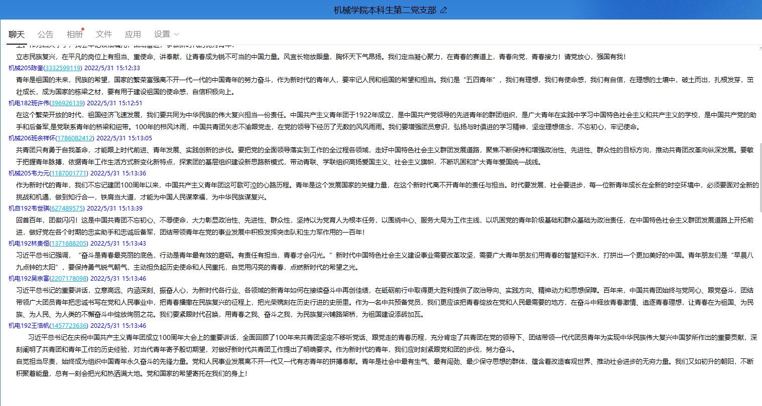 2022年5月10日,慶祝中國(guó)共產(chǎn)主義青年團(tuán)成立100周年大會(huì)在北京舉行,習(xí)近平總書(shū)記出席并發(fā)表重要講話。為深入學(xué)習(xí)貫徹習(xí)近平總書(shū)記的重要講話精神,根據(jù)學(xué)校《關(guān)于深入學(xué)習(xí)貫徹習(xí)近平總書(shū)記在慶祝中國(guó)共產(chǎn)主義青年團(tuán)成立100周年大會(huì)上重要講話精神的通知》的要求和具體安排,在學(xué)院黨委的指導(dǎo)下,我院本科生第二黨支部于5月31日下午組織召開(kāi)了專(zhuān)題學(xué)習(xí)活動(dòng)。