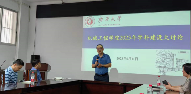 為深入開展學習貫徹習近平新時代中國特色社會主義思想主題教育調(diào)研,助推我院學科高質(zhì)量發(fā)展,學院班子于6月11日上午在機械樓第一會議室組織召開“機械工程學院2023年學科建設大討論”,圍繞如何更好地統(tǒng)籌利用學院有限的科研資源推動亞熱帶智能農(nóng)機特色學科方向發(fā)展廣泛聽取專任教師的建議意見。會議由學院黨委書記盧嬋江主持,院長尤暉、常務副院長蒙艷玫、副院長李俚、副院長賀德強、副院長黃豪中等學院領導班子成員、全院學科負責人、學術(shù)骨干和專任教師等40多人參加研討。