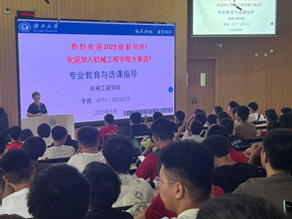 李俚副院長向同學們介紹了學院人才培養(yǎng)總目標、畢業(yè)要求、大學學習的特點和自我管理與自我規(guī)劃的要求,勉勵大家要:學會做人、學會做事、賦能成長。李俚副院長重點解讀了學院各專業(yè)最低畢業(yè)學分的組成、通識選修課的修讀要求、學籍管理的要點以及報讀機械工程創(chuàng)新人才培養(yǎng)實驗班的政策。