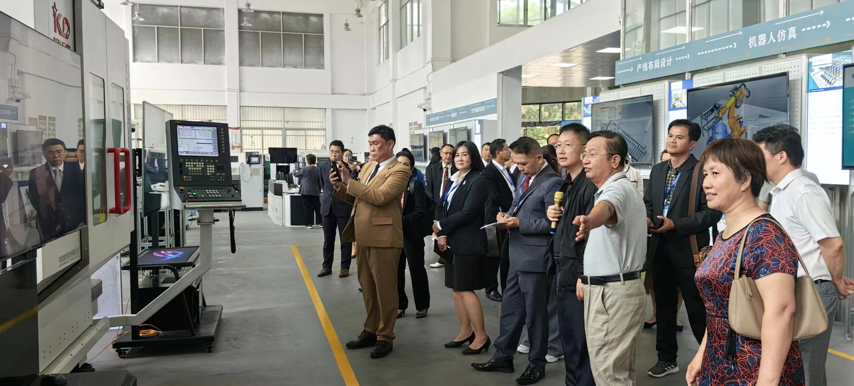 4月25日,由泰國教育部高級顧問、泰國雙邊職業(yè)教育委員會主任、泰國東盟企業(yè)家協(xié)會會長和常務(wù)副會長,以及泰國素攀職業(yè)技術(shù)學(xué)院、色娜職業(yè)學(xué)院、翁喃巖職業(yè)技術(shù)學(xué)院、甘碧亨農(nóng)業(yè)技術(shù)學(xué)院、四色菊朱拉瑪尼職業(yè)學(xué)院、邦盛職業(yè)技術(shù)學(xué)院、塔甘皮坡職業(yè)技術(shù)學(xué)院、佛統(tǒng)測量技術(shù)學(xué)校等8所職業(yè)院校領(lǐng)導(dǎo)一行14人組成的訪團(tuán),到我院進(jìn)行參觀考察。