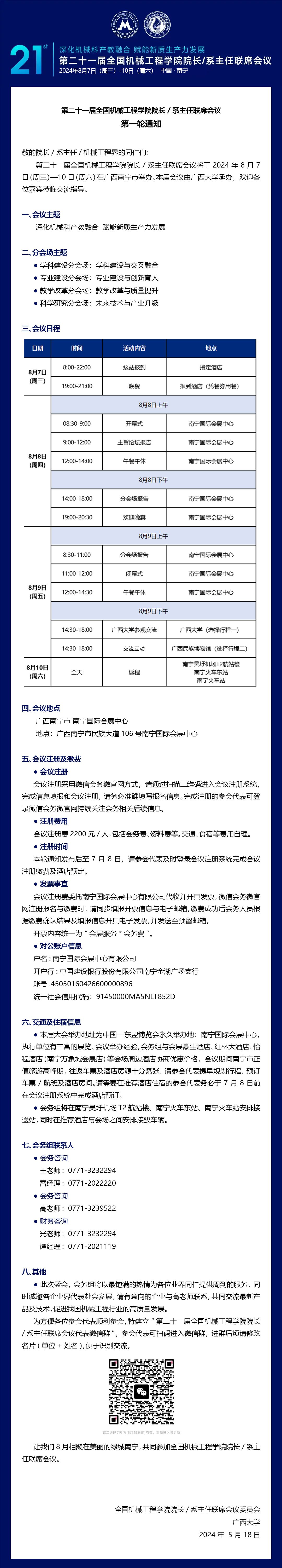 第二十一屆全國機(jī)械工程學(xué)院院長/系主任聯(lián)席會(huì)議第一輪通知