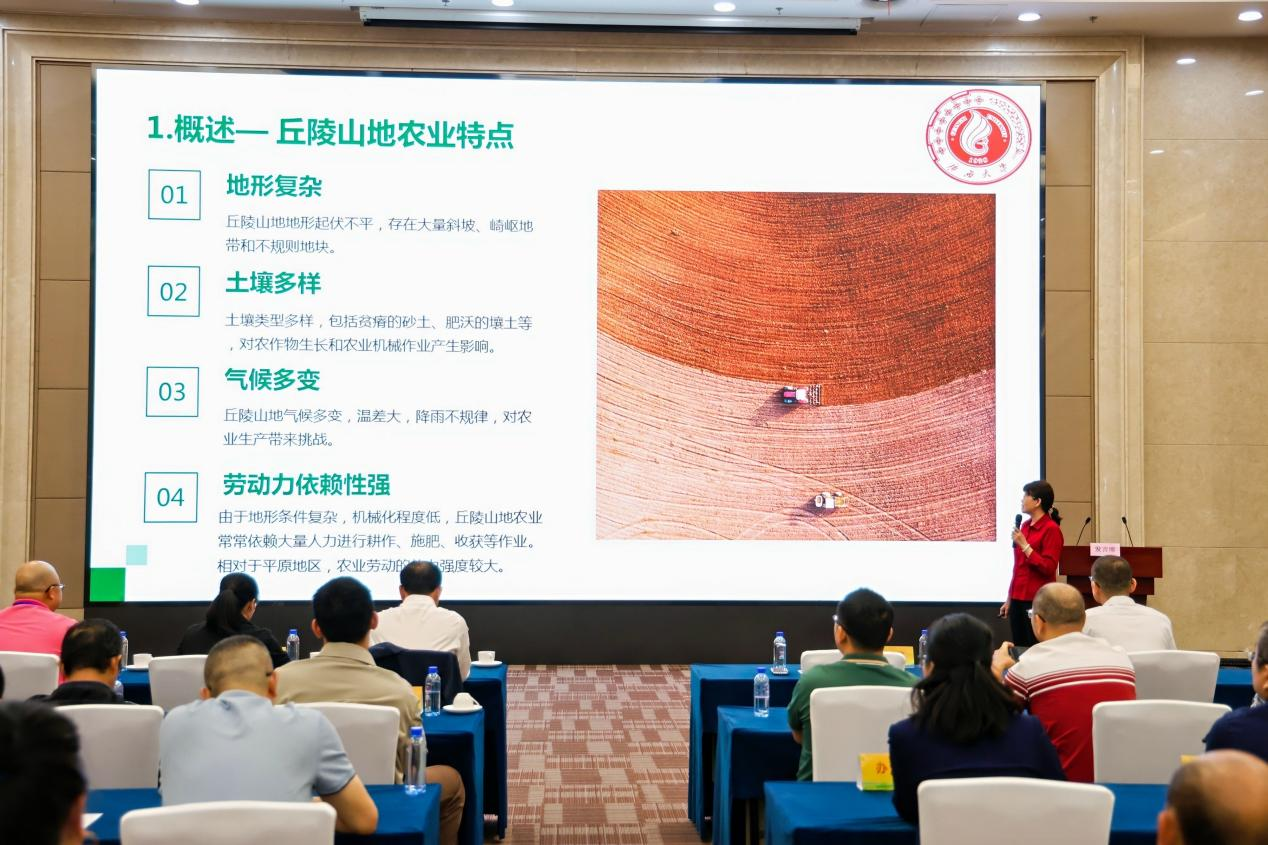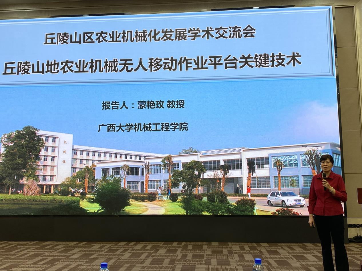 11月9日上午,廣西國(guó)際農(nóng)業(yè)博覽會(huì)在南寧國(guó)際會(huì)展中心舉辦“丘陵山區(qū)農(nóng)業(yè)機(jī)械化發(fā)展學(xué)術(shù)交流會(huì)”。會(huì)議由中國(guó)農(nóng)機(jī)學(xué)會(huì)主辦,區(qū)內(nèi)外科研院所、高等院校的專(zhuān)家學(xué)者齊聚一堂,共同探討和交流丘陵山區(qū)農(nóng)業(yè)機(jī)械化的關(guān)鍵技術(shù)和發(fā)展趨勢(shì)。我院蒙艷玫教授代表廣西大學(xué)受邀作題為《丘陵山地?zé)o人作業(yè)底盤(pán)關(guān)鍵技術(shù)》的主旨報(bào)告,介紹了我院在丘陵山地?zé)o人作業(yè)底盤(pán)的研發(fā)背景、技術(shù)難點(diǎn)、主要?jiǎng)?chuàng)新,以及該技術(shù)在提高農(nóng)業(yè)生產(chǎn)效率、降低勞動(dòng)強(qiáng)度方面的應(yīng)用前景。