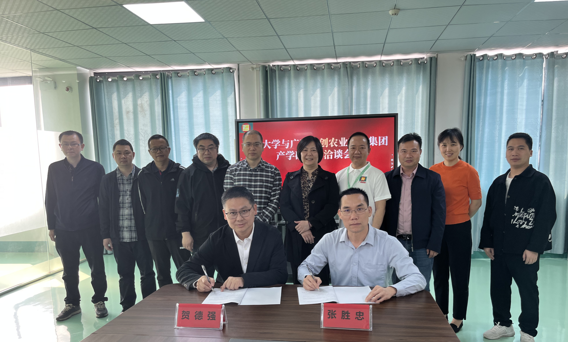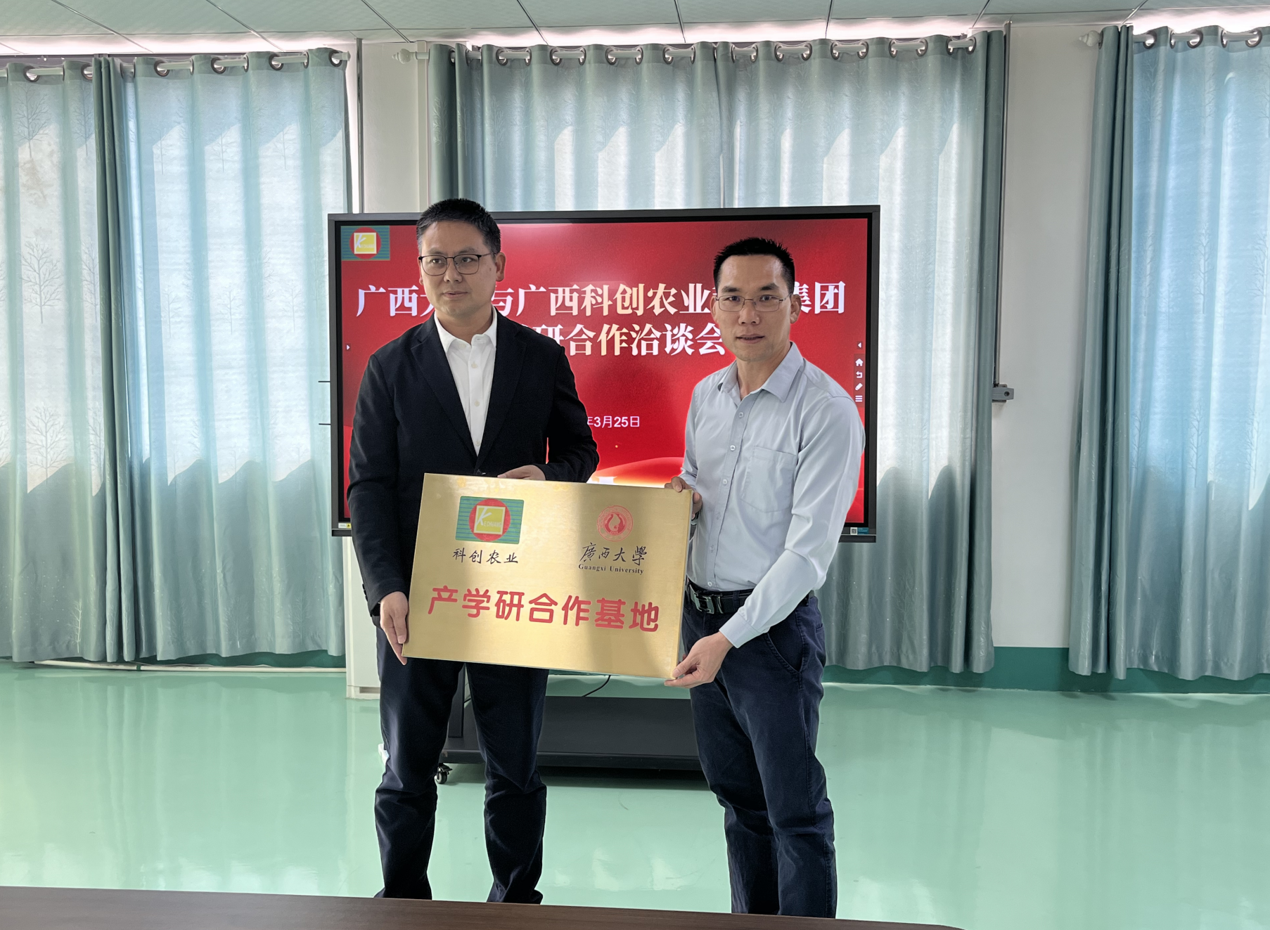 最后,賀德強(qiáng)院長(zhǎng)代表西大和張勝忠董事長(zhǎng)簽署“廣西大學(xué)-廣西科創(chuàng)農(nóng)業(yè)科技集團(tuán)產(chǎn)學(xué)研合作基地”共建協(xié)議,并現(xiàn)場(chǎng)舉行揭牌儀式。