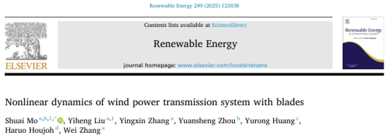 近日,我院2022級碩士研究生劉翊恒(導(dǎo)師:莫帥教授)以共同第一作者在工程技術(shù)領(lǐng)域國際權(quán)威學(xué)術(shù)期刊《Renewable Energy》(中科院一區(qū),Top期刊,IF:9.0)發(fā)表研究成果“Nonlinear dynamics of wind power transmission system with blades”。該成果以廣西大學(xué)機(jī)械工程學(xué)院為第一單位。