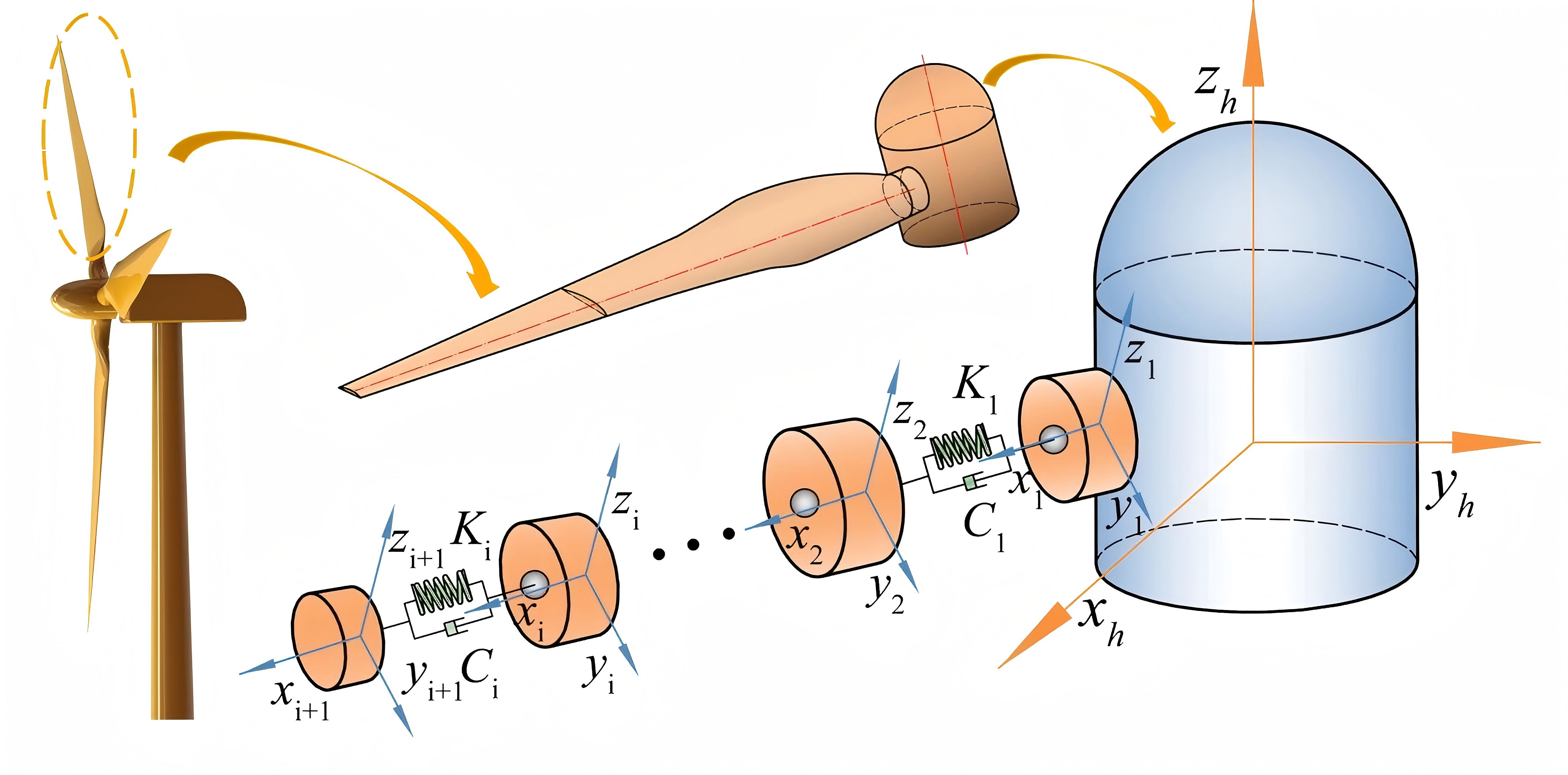 該成果創(chuàng)新性建立了考慮風(fēng)切變、塔影效應(yīng)、時變嚙合剛度等多因素耦合的風(fēng)電葉片-齒輪-軸承傳動系統(tǒng)非線性動力學(xué)模型,通過該動力學(xué)模型,并利用數(shù)值積分法求解系統(tǒng)振動微分方程組,可以實現(xiàn)風(fēng)電葉片-齒輪-軸承傳動系統(tǒng)振動特性的精確性表征。該研究成果不僅為風(fēng)電機(jī)組的優(yōu)化設(shè)計、振動控制與故障診斷奠定了理論依據(jù),同時還為新能源裝備動力學(xué)研究提供新范式。