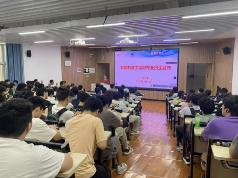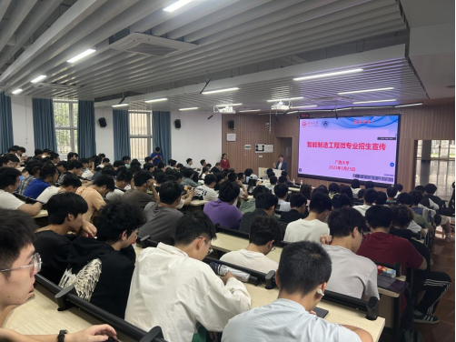 2025年5月25日上午,我院在第十教學樓10A-101教室召開《智能制造工程》微專業(yè)招生宣傳會,會議邀請了教務處謝健副處長、兄弟學院副院長、北京華航唯實機器人科技股份有限公司、國投融合科技股份有限公司、海爾智家股份有限公司等合作企業(yè)參加,會議由學院黨委副書記黃路明主持,副院長李俚作總結講話,院長助理項載毓老師做大會的技術支持,全校相關專業(yè)將近200名學生到現(xiàn)場參加招生宣傳會。