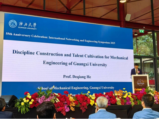 賀德強(qiáng)院長作為首位嘉賓在開幕式上作主旨報(bào)告。賀院長向與會的國際專家學(xué)者全面介紹廣西大學(xué)辦學(xué)歷史和學(xué)科發(fā)展,并著重分享機(jī)械工程學(xué)院在學(xué)科交叉融合、精準(zhǔn)服務(wù)區(qū)域與國家重大需求導(dǎo)向下,在學(xué)科建設(shè)和人才培養(yǎng)方面所取得的建設(shè)成效,贏得與會專家的高度關(guān)注。