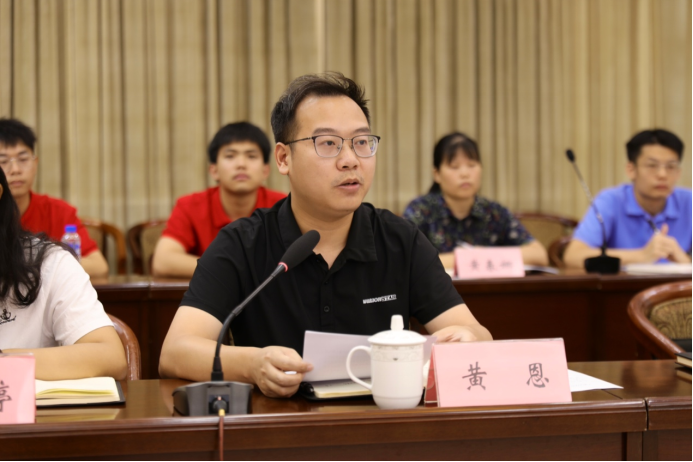 在平果工作的選調(diào)生校友代表依次分享了工作經(jīng)歷與感悟。2017屆校友黃恩講述八載扎根基層,踐行馬君武精神,在脫貧攻堅(jiān)與鄉(xiāng)村振興一線歷練成長的故事。他歷經(jīng)多崗位磨礪,以“民政為民、民政愛民”為宗旨,深耕政策落地“最后一公里”,切實(shí)解決群眾急難愁盼問題,彰顯青年選調(diào)生擔(dān)當(dāng)實(shí)干、服務(wù)民生的初心使命。
