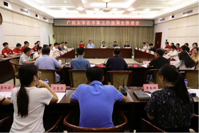 在座談會伊始,王利軍副部(處)長明確闡述了此次調(diào)研的來意。此次調(diào)研旨在通過深入的座談交流,全面了解選調(diào)生校友在基層崗位上的工作收獲、所面臨的挑戰(zhàn)及應(yīng)對策略,以及他們在服務(wù)地方經(jīng)濟(jì)社會發(fā)展中所取得的成效。調(diào)研將聚焦于選調(diào)生校友在基層工作中的能力提升路徑和價值實(shí)現(xiàn)方式,以期挖掘出更多值得推廣的經(jīng)驗(yàn)和做法。王利軍對平果市委組織部長期以來對廣西大學(xué)選調(diào)生工作的支持表示感謝,并介紹了學(xué)校近年來實(shí)施的《廣西大學(xué)選調(diào)生“君武青苗”行動方案》。他強(qiáng)調(diào),學(xué)校高度重視選調(diào)生工作,將選調(diào)生培養(yǎng)選拔貫穿到學(xué)院人才培養(yǎng)全過程,希望與平果市委組織部加強(qiáng)合作,共同探索選調(diào)生校地協(xié)同培養(yǎng)機(jī)制,助力選調(diào)生在基層一線成長成才。