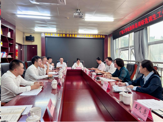 為貫徹學校黨委關于選調生工作的決策部署,落實“扶上馬,送一程,關懷一輩子”的指示精神,深化鄉(xiāng)村振興與民族團結工作,9月30日,學院黨委聯(lián)合校學工部、校友辦赴百色市西林縣開展選調生走訪調研工作。學院黨委書記盧嬋江、副書記黃路明、副院長陳宏波、校友辦副主任黃庶冰、學工部代表王天亮以及我院輔導員等一行7人一同前往走訪慰問。西林縣委常委、組織部部長、黨校校長諶宏明,縣委組織部副部長、公務員局局長李富銀,以及在西林縣服務的廣西大學選調生代表等9人參加座談交流。