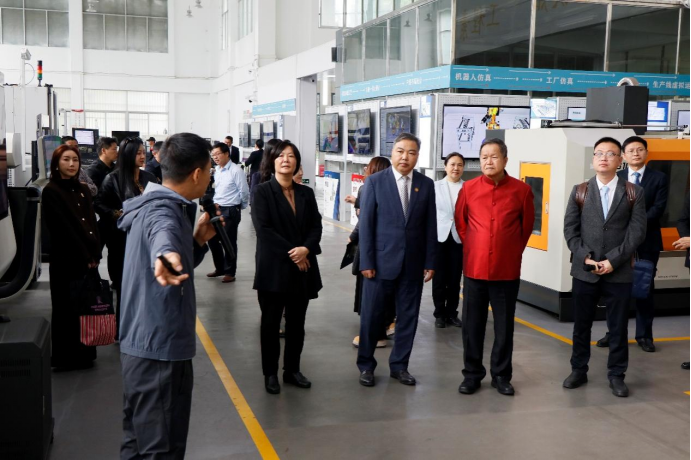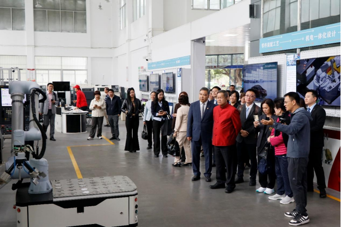 盧嬋江書記向外賓簡要介紹廣西大學(xué)工程訓(xùn)練中心的功能定位、日常運(yùn)行和社會服務(wù),以及對中國—東盟智能制造技術(shù)創(chuàng)新學(xué)院建設(shè)的支撐作用等概況。馮建強(qiáng)老師帶領(lǐng)外賓參觀智慧車間,介紹我院圍繞智能制造所開展的產(chǎn)品研發(fā)、人才培養(yǎng)、科學(xué)教育等情況。各位來賓認(rèn)真聆聽,不時詢問設(shè)備的應(yīng)用場景,對中國的智能制造,對廣西大學(xué)在人工智能領(lǐng)域的人才培養(yǎng)、發(fā)展水平與建設(shè)成效給予高度評價。