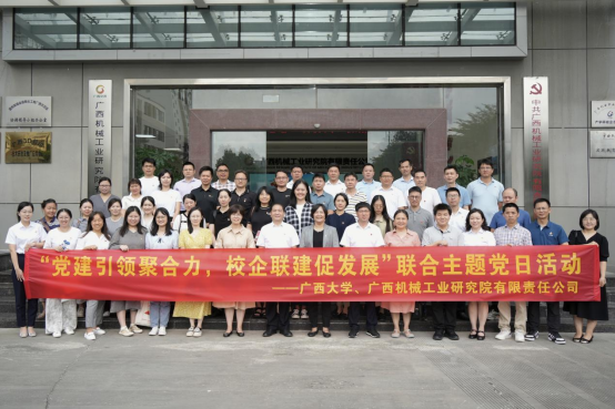 為進一步探索黨建引領(lǐng)教育科技人才一體化發(fā)展路徑,5月22日,由機械工程學院黨委書記盧嬋江帶隊,學院教工第三黨支部聯(lián)合機關(guān)黨委人力資源處黨支部和教務(wù)處黨支部赴廣西交通投資集團廣西機械工業(yè)研究院有限責任公司(以下簡稱機械院)開展“黨建引領(lǐng)聚合力,校企聯(lián)建促發(fā)展”聯(lián)合主題黨日活動。機械院黨委書記兼董事長譚洪河,副書記兼總經(jīng)理李小春、黨委委員兼副總經(jīng)理吳湘檸等領(lǐng)導出席。廣西大學人力資源處副處長吳彤、朱晨姝,廣西大學教務(wù)處副處長胡立坤分別帶領(lǐng)支部出席活動。