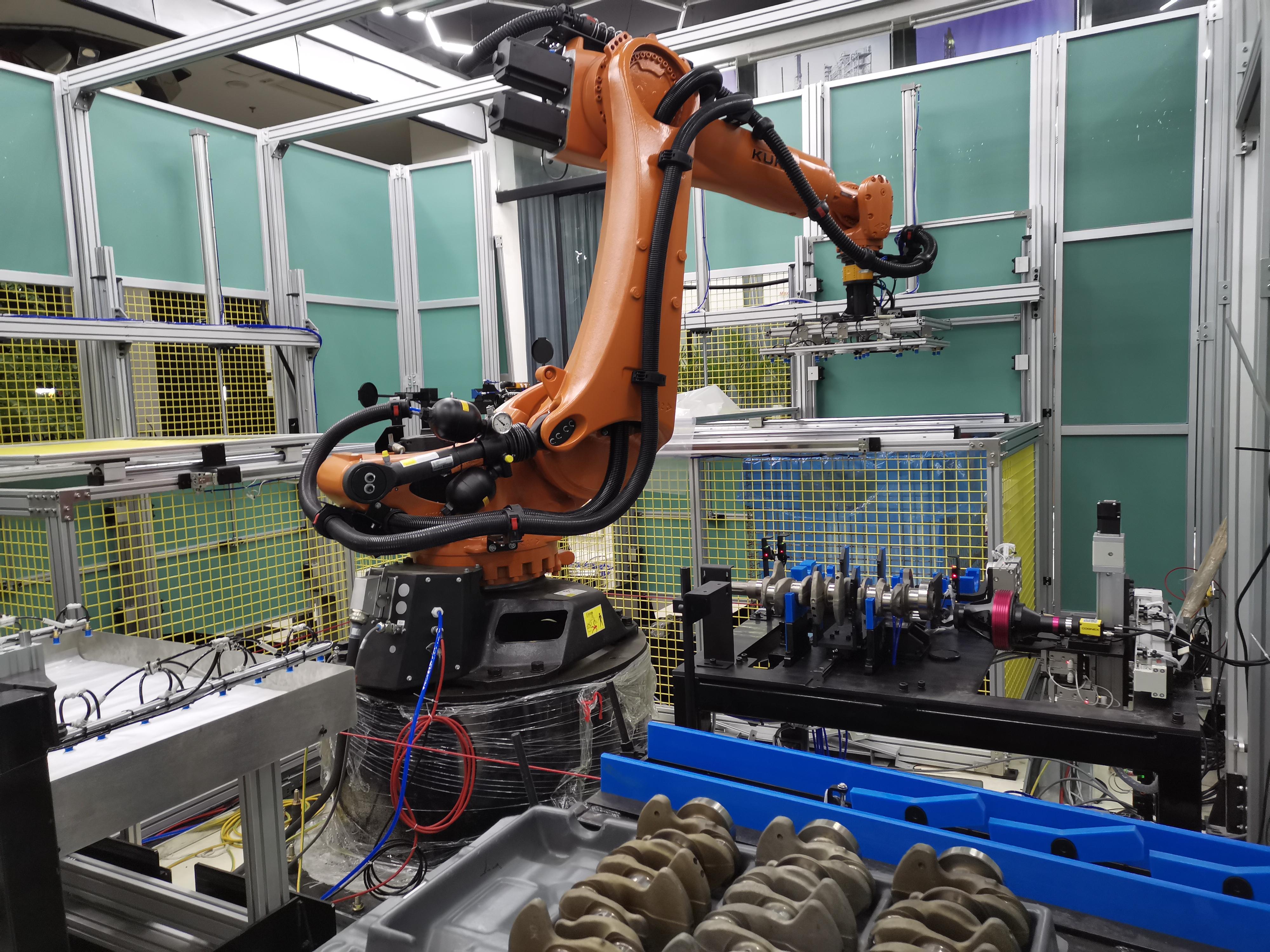 圖4與上市公司深圳萬(wàn)訊自控有限公司合作設(shè)計(jì)的發(fā)動(dòng)機(jī)曲軸自動(dòng)上下料流水線(b)