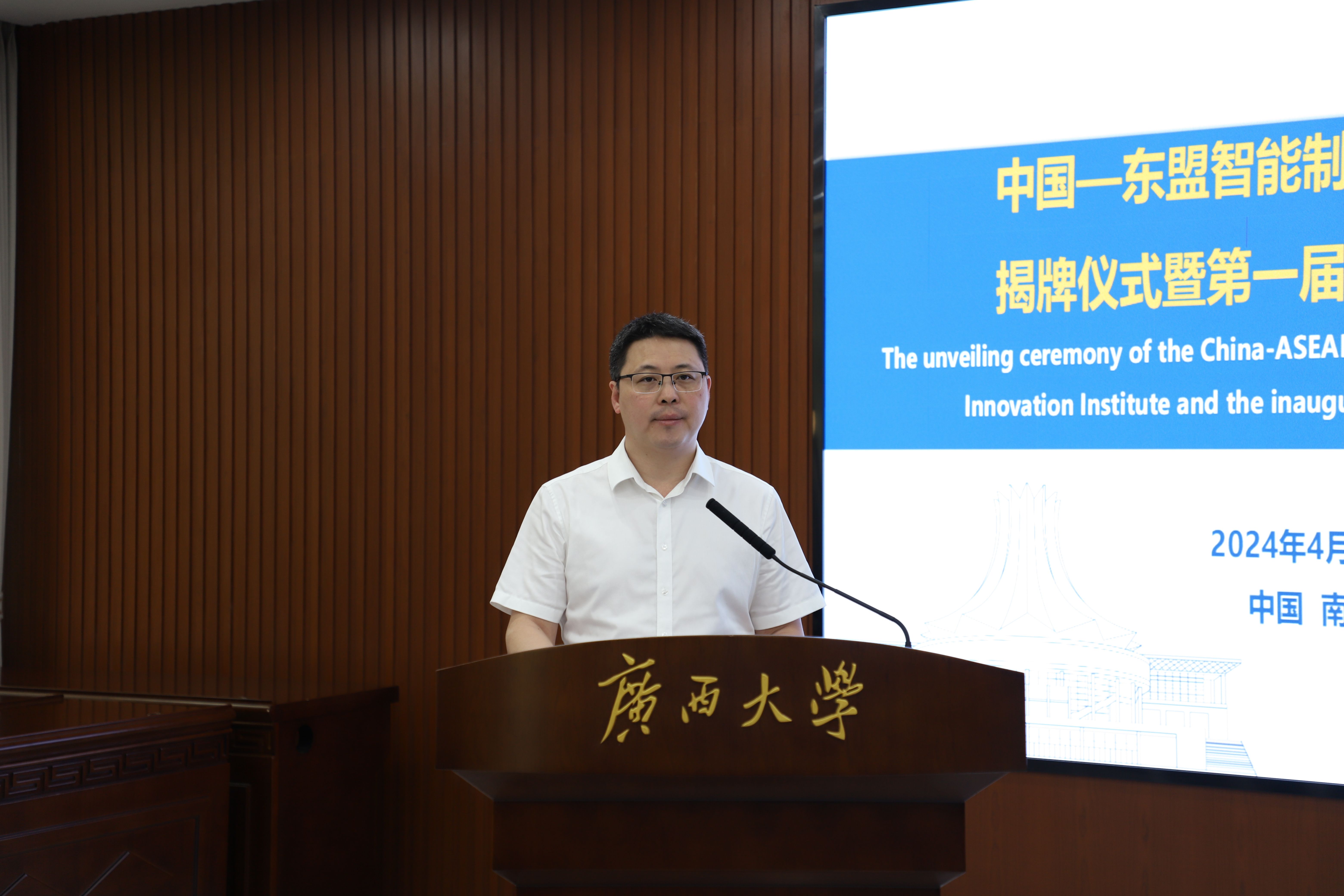 4月25日上午,由我院牽頭的中國-東盟智能制造技術(shù)創(chuàng)新學(xué)院在我校揭牌成立。校黨委常委、副書記馬獻(xiàn)力、自治區(qū)教育廳高教處處長兼學(xué)位管理與研究生教育處處長(自治區(qū)學(xué)位辦主任)傅源方共同為技術(shù)創(chuàng)新學(xué)院揭牌。